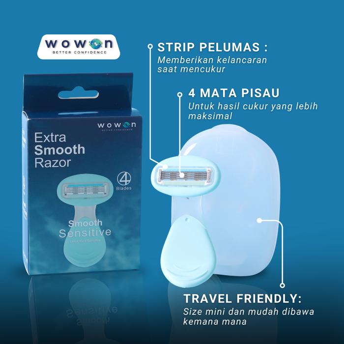 MEGA SALE WOWON ALAT CUKUR WANITA / PRIA SMOOTH SENSITIVE RAZOR - BLUE BEST