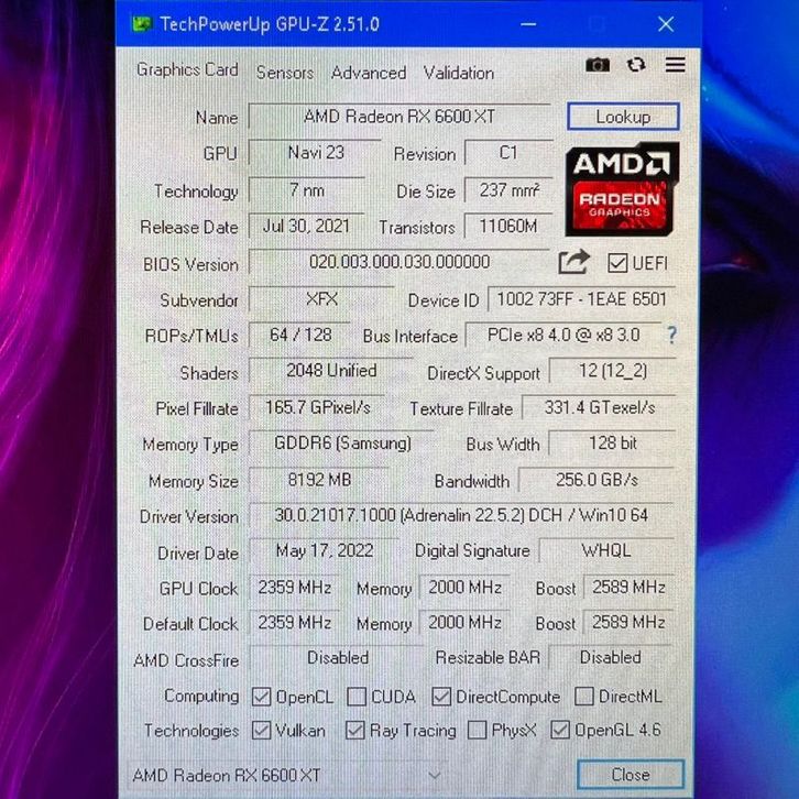 VGA RX 6600XT 8GB XFX SPEEDSTER GDDR6 (LIKE NEW)