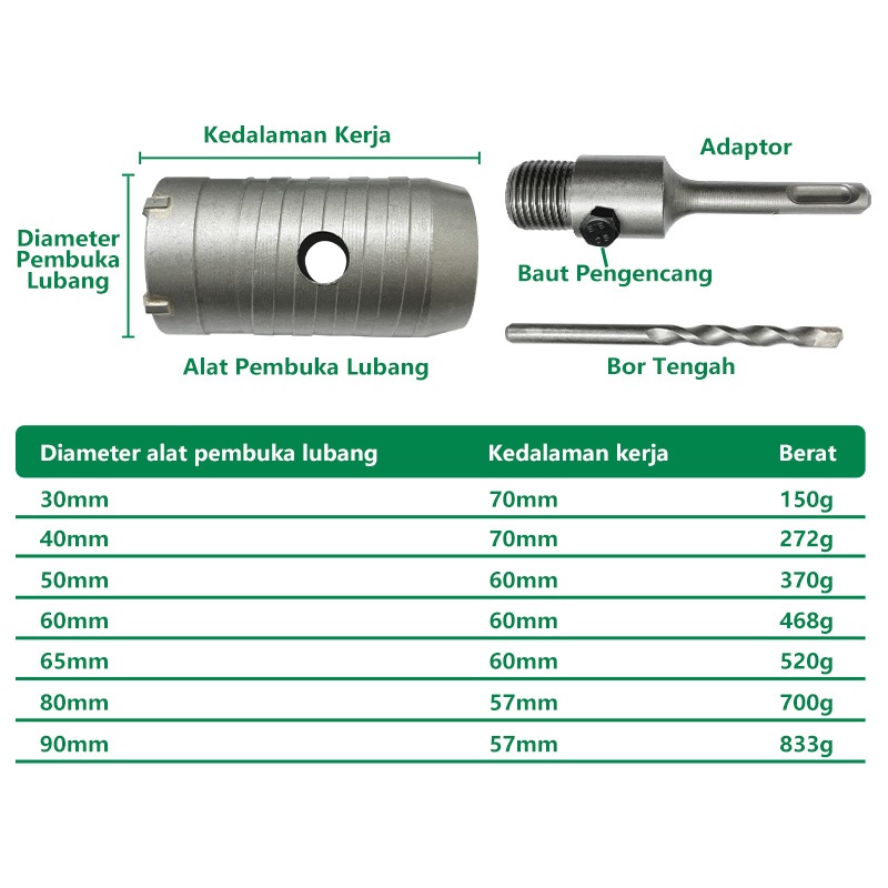 ISKU Hole Saw Set 7pcs Mata Bor Kaca Keramik Granit Marmer Batu Porselen Diamond HSS holesaw pelubang