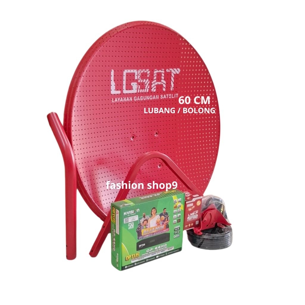 ANTENA TV LGSAT ARABOLA MINI 60 CM KUBAND FULL SET LENGKAP + RECEIVER OPTUS 66HD