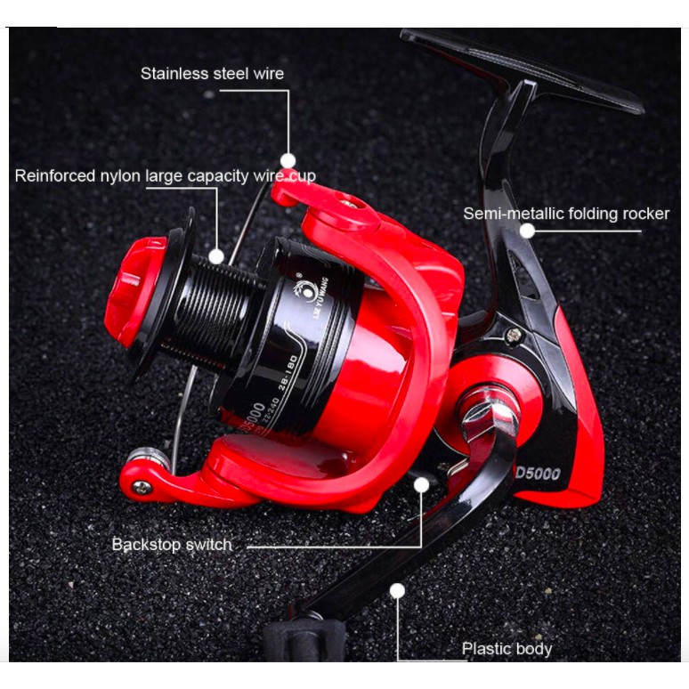 REEL PANCING MURAH FD 1000-6000 MAX DRAG 6 KG RATIO 5.0:1 RED BLACK SPINNING REEL