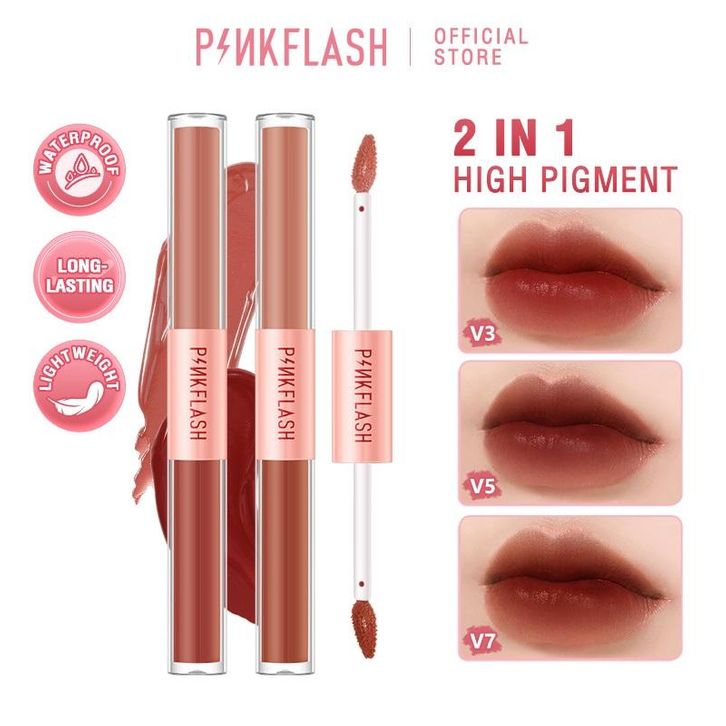 PINKFLASH 2 IN 1 Lipstick Dual-ended Liquid Matte Lipstick Velvet Tint Lightweight High Pigment Lasting DoubleSense