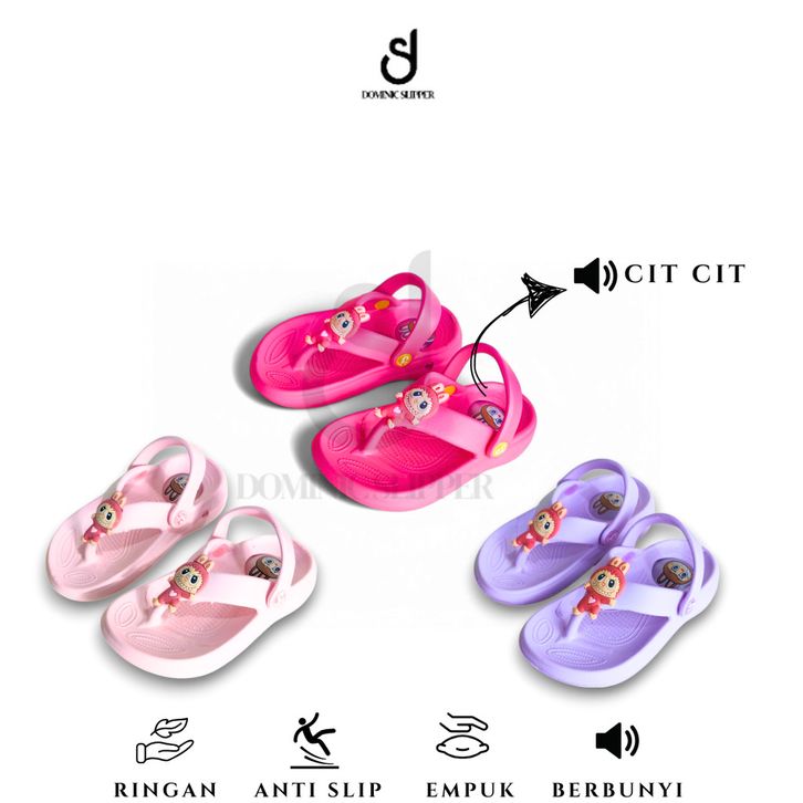 GROSIR DOMINIC Sandal Jepit Anak Cewek Cowok Jibbiz Bunyi Cit-Cit Super Cute Empuk Trendy Size 18-23 unocc