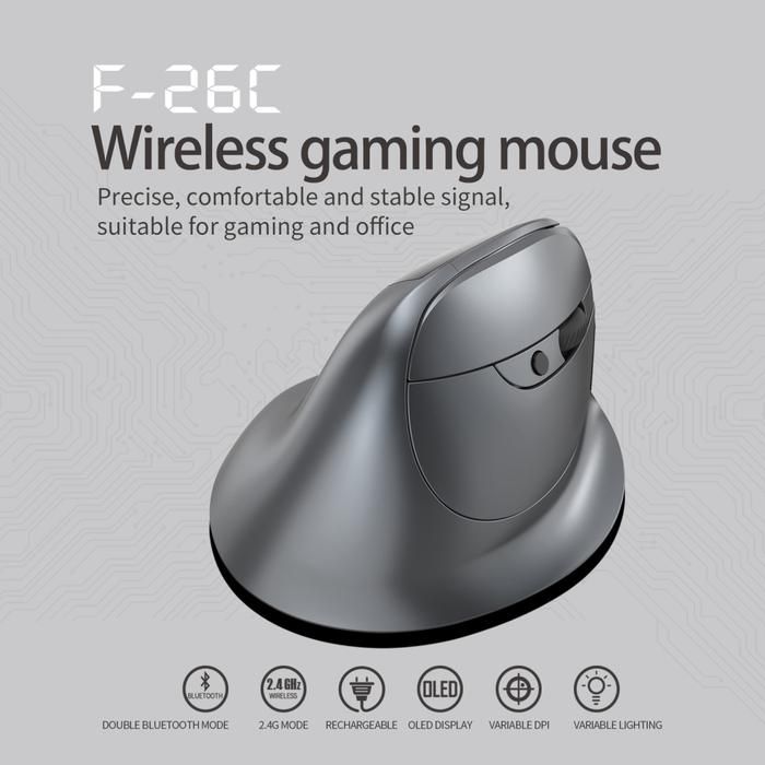 Zelotes F26C Ergonomic Wireless Vertical Gaming Mouse 2.4GHz and Bluetooth 8 button DPI up to 3200 - F-26C