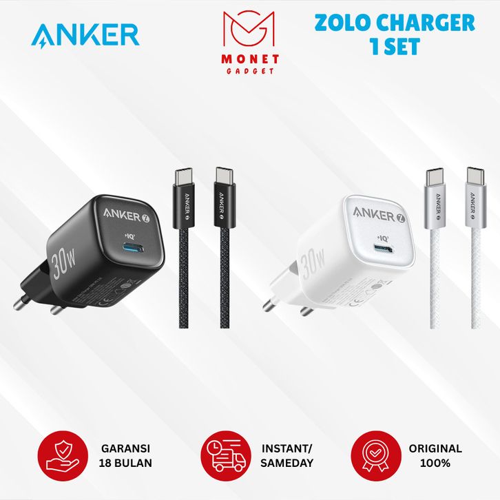 MONET Anker Zolo GaN 30W Charger Kabel Nylon Braided USB Type C to C Fast Charging 1 Set B2698