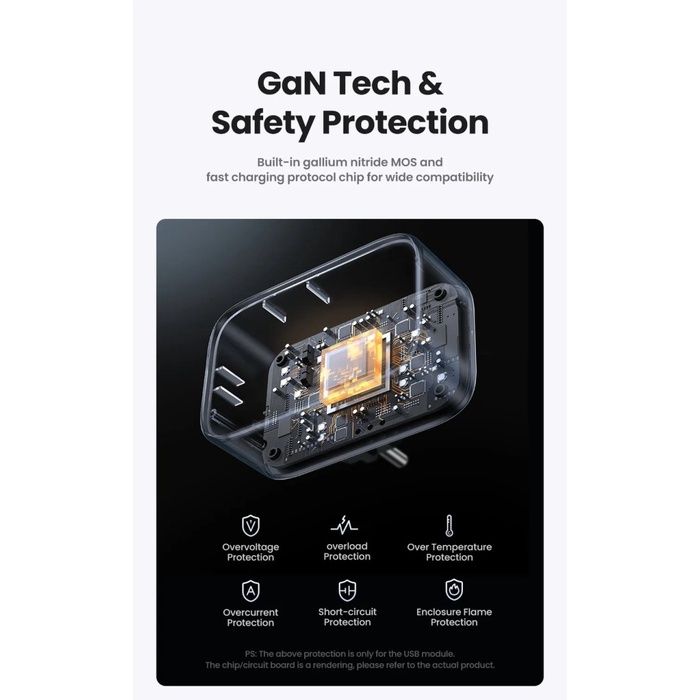 UGREEN Stop Kontak Charger 30W 3 Port 2 USB + Type C GaN PD Fast Charging 90613