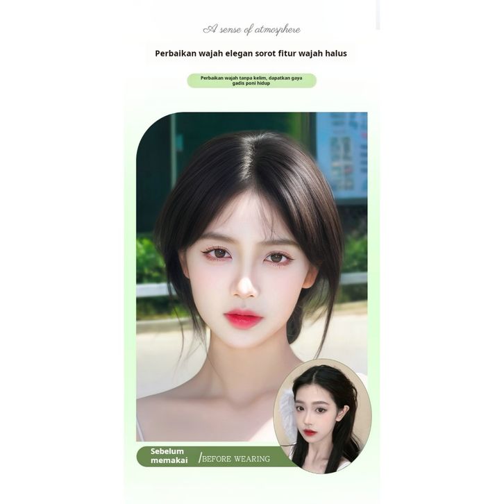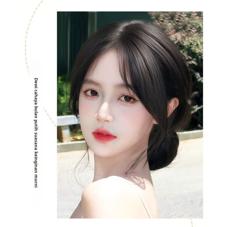 BARU Wig wanita dengan poni delapan karakter, poni palsu tipis, wig tengkorak tinggi, rambut simulasi kepala