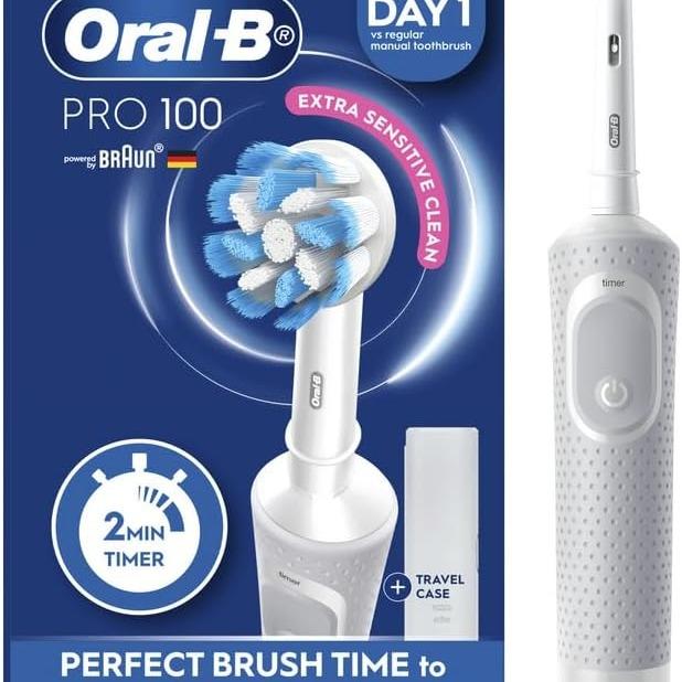Oral B Pro 100 Rechargeable Electric Toothbrush Sikat Gigi Elektrik - Extra Sensitive