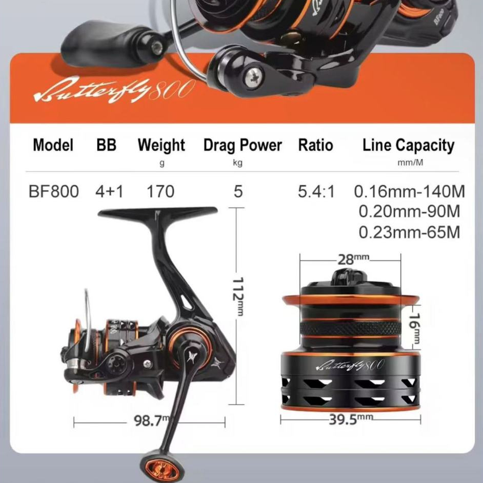 BISA FREE LINE HASIDA BF 800 Reel Pancing Reel Spinning Saltwater Gulungan Pancing, 4+1 BB Ball Bearing, Gear Ratio: 5.4:1 Drag 5kg Berat 170g
