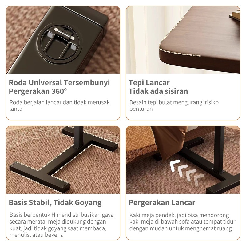 MEJA LAPTOP DENGAN RODA MEJA BELAJAR MEJA KAMAR TIDUR MEJA SEDERHANA MEJA SAMPING MEJA MAKAN MEJA KOPI SELULER MINIMALIS