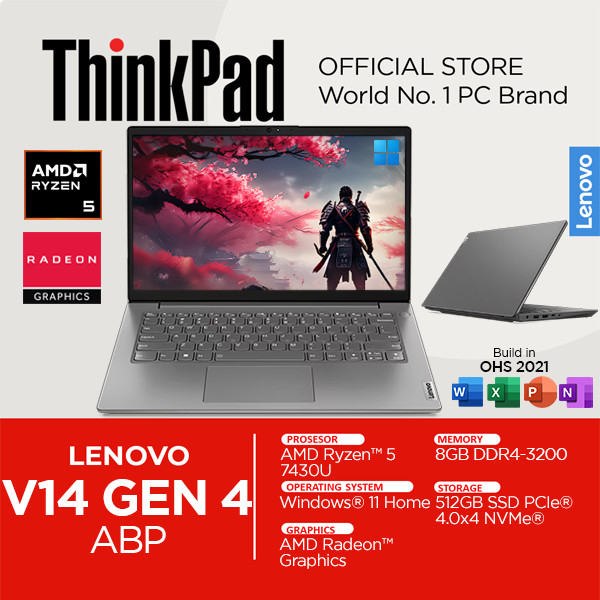 Lenovo V14 Gen 4 AMD Ryzen 5 7430U 512GB SSD 8GB RAM Windows 11 OHS 14 Inch FHD IPS 7430 13ID