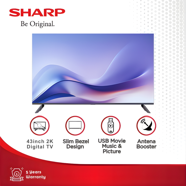 SHARP Digital TV 2K 43 Inch - 2T-C43HD1500I - USB Movie - Wide Colour - Comfort Mode - DVBT2