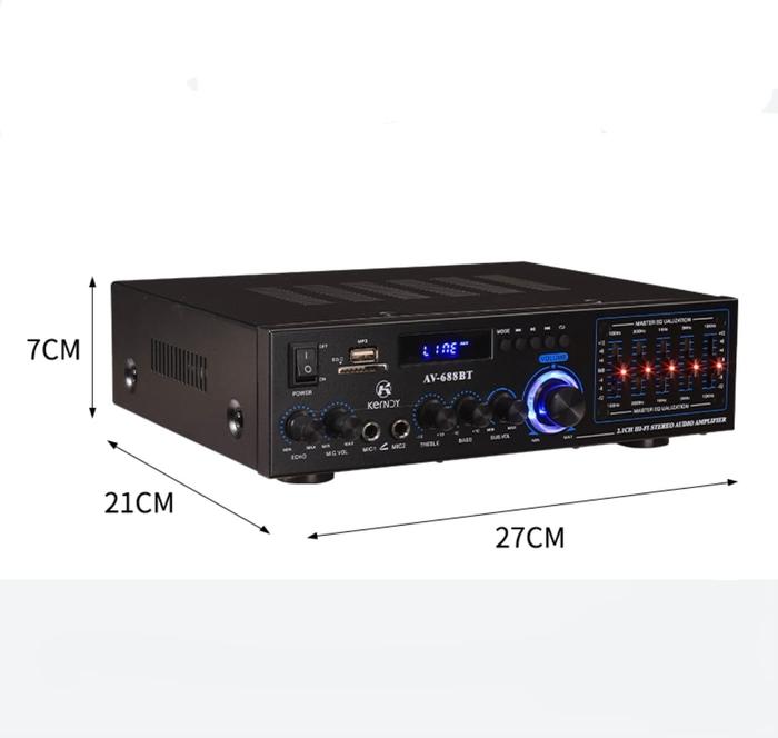Kerndy Amplifier Bluethooth 5.2 Audio EQ AV-688BT Channel 2.1 Full Bass SUBWOFER Amplifier Karaoke Home Theater AV688BT