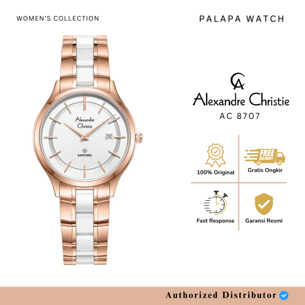 JAM TANGAN WANITA ALEXANDRE CHRISTIE AC 8707 / AC8707 / 8707 RANTAI SAPPHIRE ORIGINAL