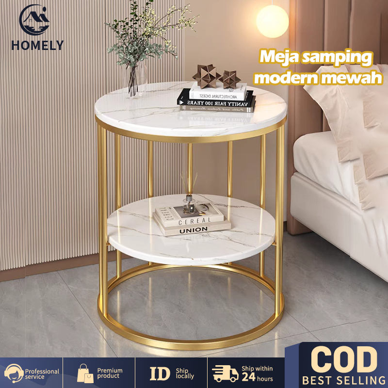 MEJA SUDUT MEJA MARMER PUTIH MEJA CAFE MEJA RUANG TAMU MINIMALIS LAPISAN GANDA/TUNGGAL COCOK UNTUK RUANG TAMU