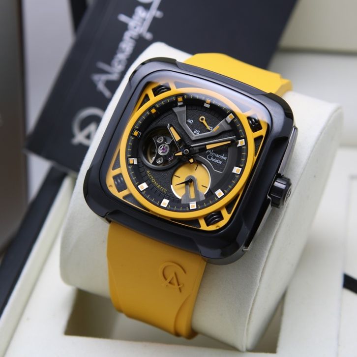 Jam Tangan Pria Alexandre Christie AC 6577 Automatic Rubber Original Garansi Resmi 1 Tahun