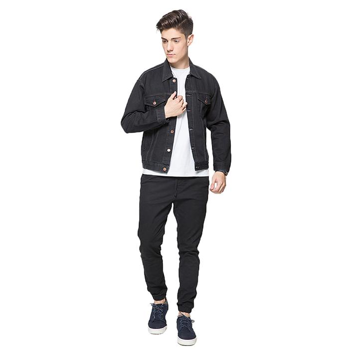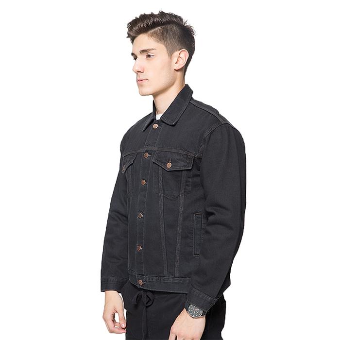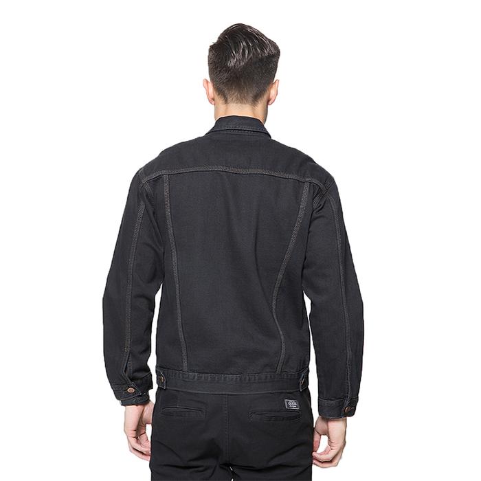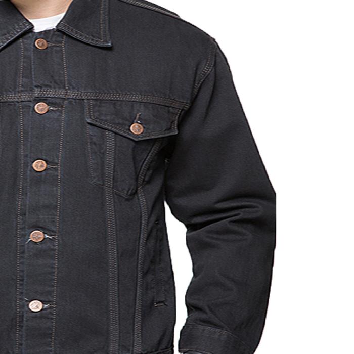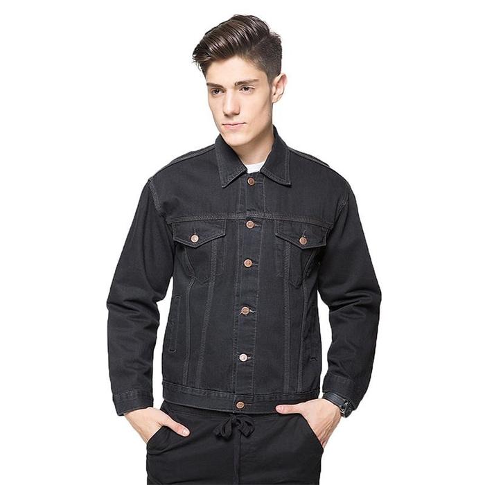 2nd RED Jaket Blazer Denim Pria Kantong Kancing Casual Fit Kerah Basic Panjang Hitam Polos 191803