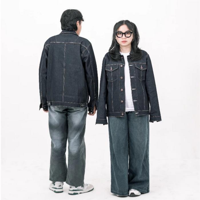 Jaket Vintage Raw Denim Pria Blue Black Raw Denim Vintage Jacket Jeans - Symposia Biru Hitam