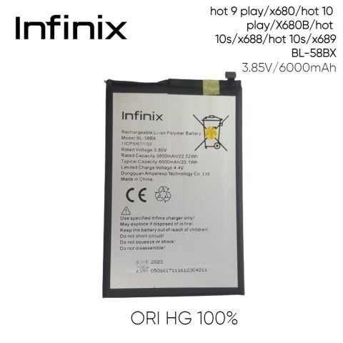 BEST SELLER BATERAI BL-58BX INFINIX HOT 9 PLAY / HOT 10 PLAY / HOT 10S / HOT 11 PLAY / HOT 12 PLAY / HOT 30 PLAY / X680