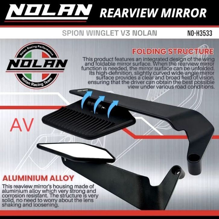Spion M0DEel Winglet V3 NOLAN Full Aluminium CNC untuk Motor VARIO, MIO, SCOOPY, BEAT, PCX, NMAX, ADV, XMAX FAZIO, dan