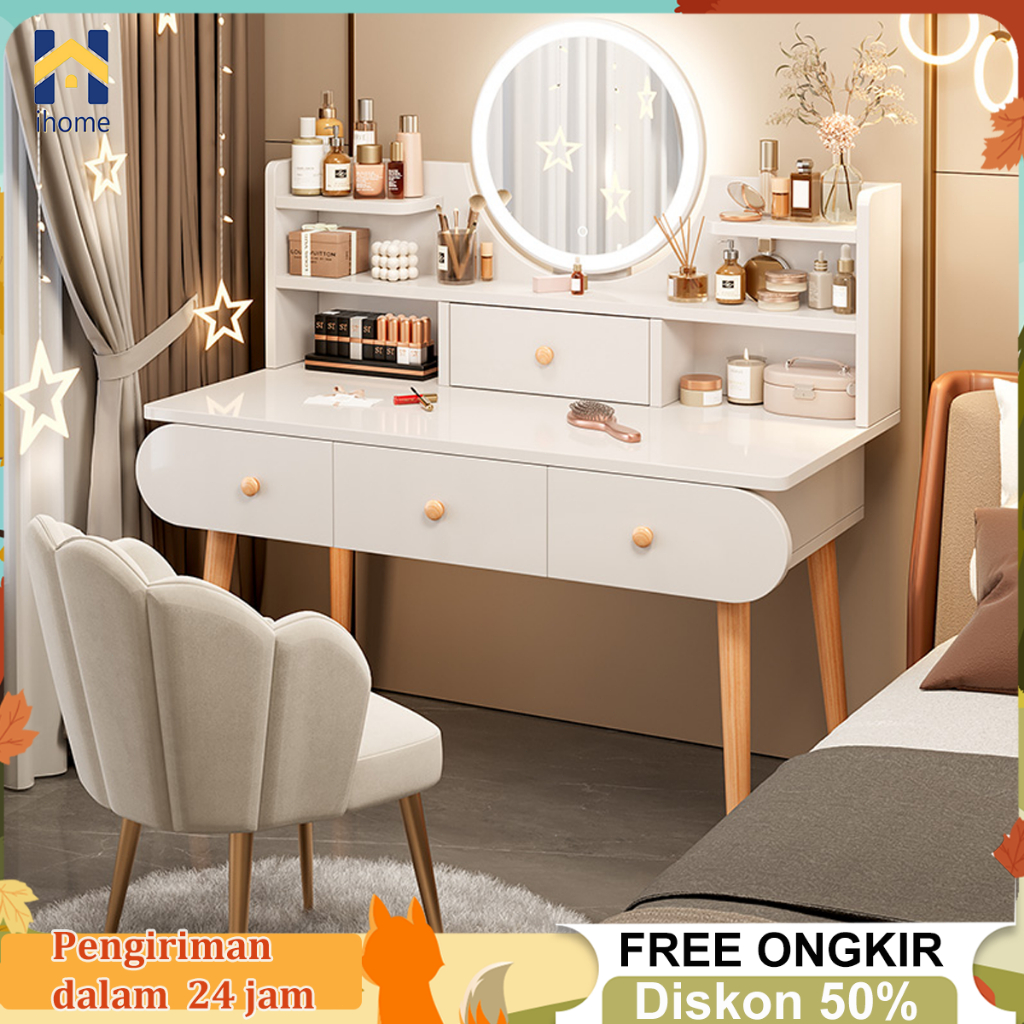 IH MEJA RIAS MINIMALIS ESTETIK + KURSI MEJA RIAS LAMPU LED MEJA RIAS AESTHETIC MEJA KAMAR TIDUR MEJA RIAS DENGAN CERMIN