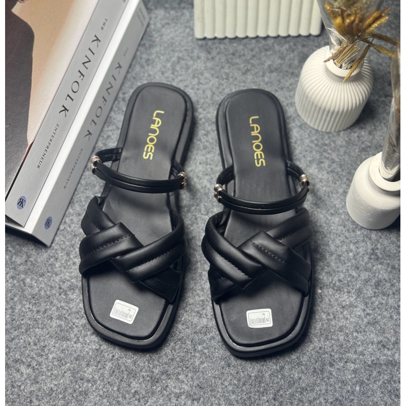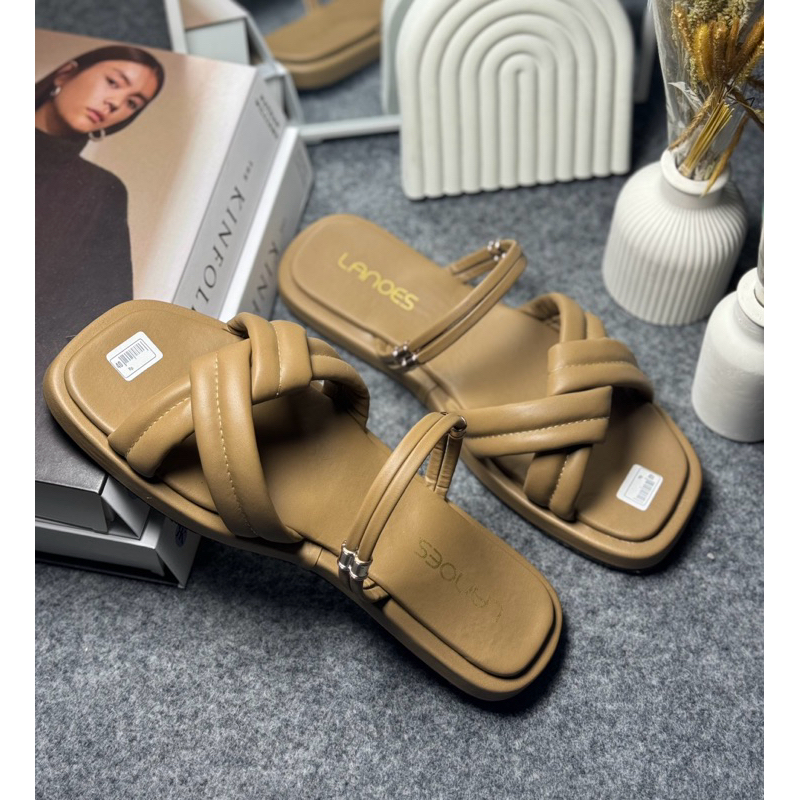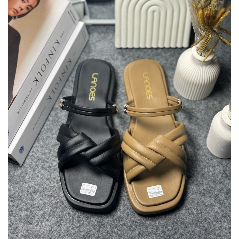 LANOES Sandal Platform Wanita Korean style Silang Tali Belakang Anti Slip Terbaru Kekinian 2025