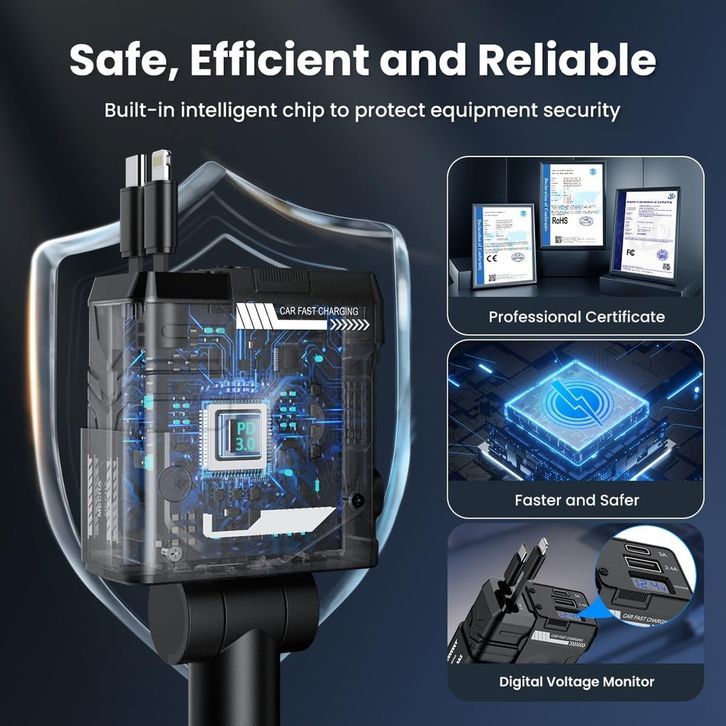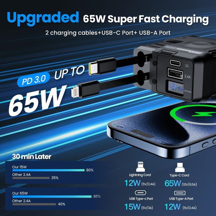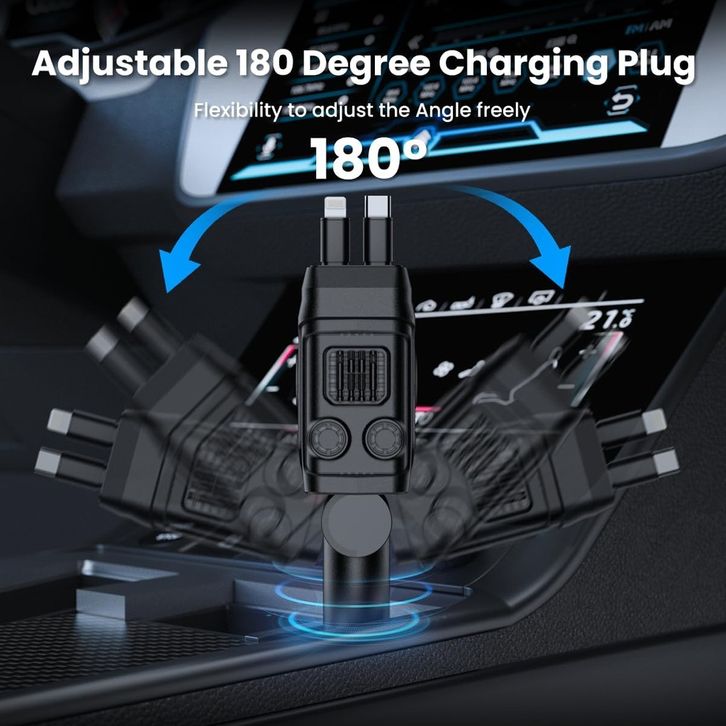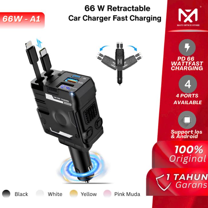 Car Charger 4 In 1 Colokan Mobil Motor Fast Charging QC 3.0 Retractable PD 66W Type C & Iphone