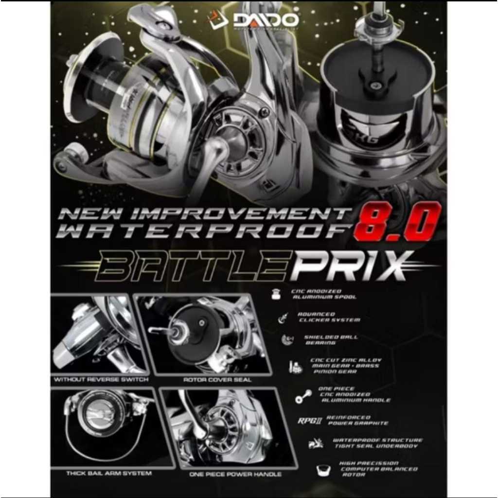 REEL DAIDO BATTLE PRIX 8.0 Waterproof BEARING ALUMUNIUM SPOOL 1000 SAMPAI 6000