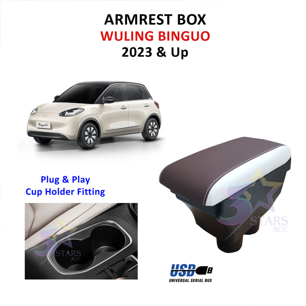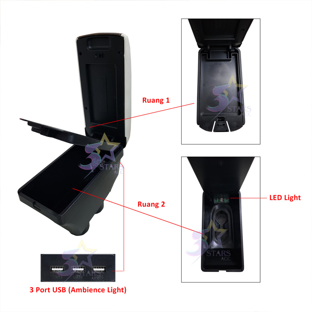 Armrest Mobil Wuling Binguo 2023-Up Luxury 3 USB Port Charger + LED Kulit | Armrest consule box Mobil