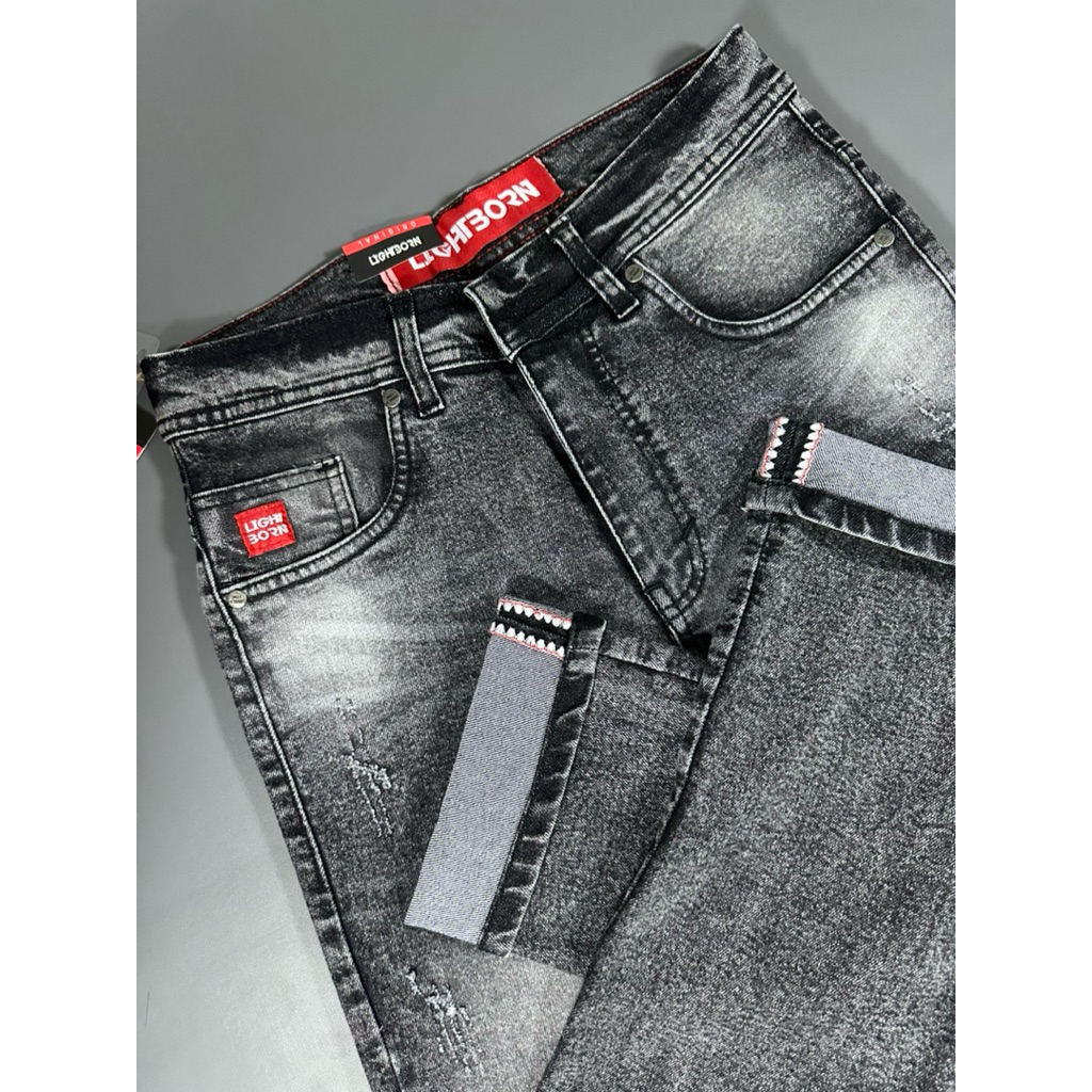LIGHTBORN Celana Denim Pria Roger Wolfy Snow Black, Slimfit Selvedge, Long Pant Men