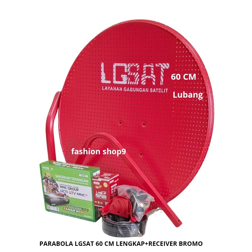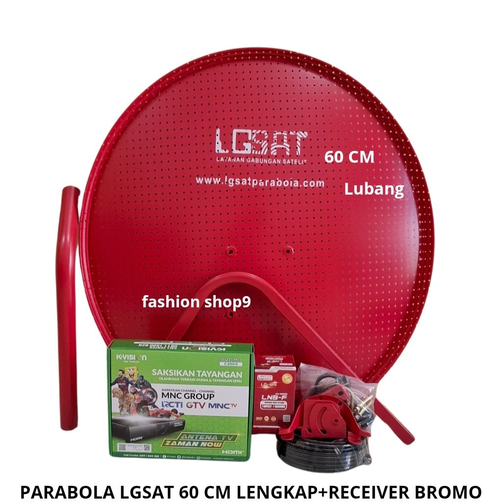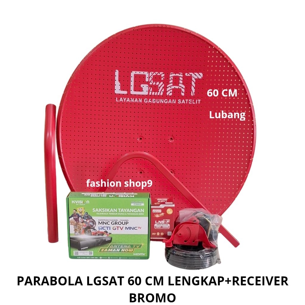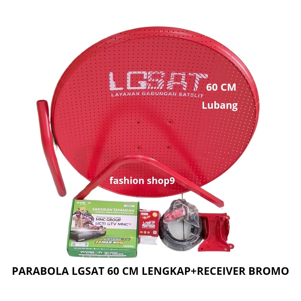 ANTENA TV LGSAT PARABOLA MINI 60 CM MERAH KUBAND FULL SET LENGKAP + RECEIVER KVISION BROMO