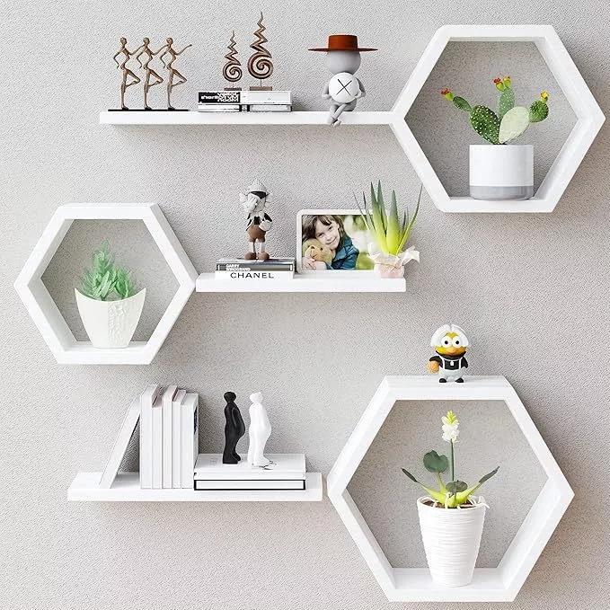 RAK DINDING HEXAGONAL SEGI ENAM KAYU TEMPEL AMBALAN MINIMALIS AESTHETIC HIASAN HEXAGONAL ESTETIK UNTUK DEKORASI RUANG TAMU