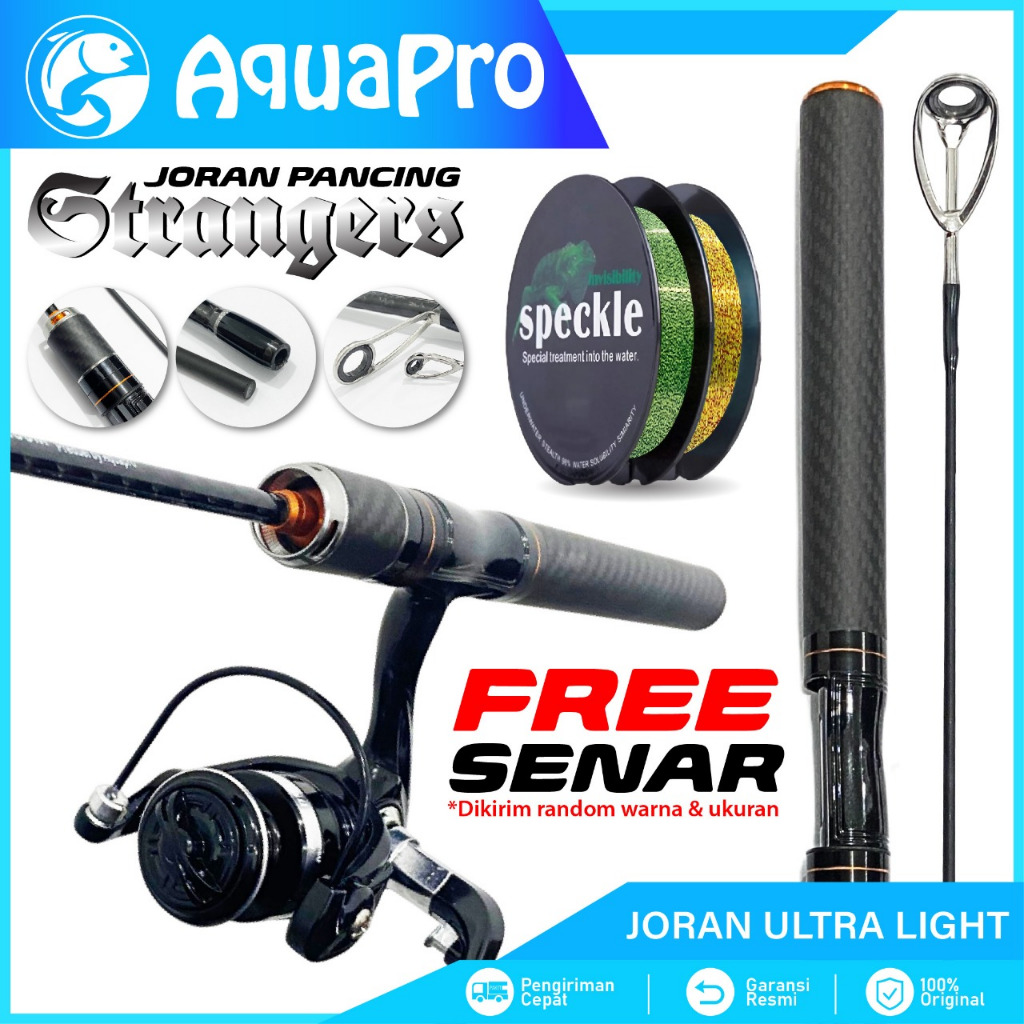 AquaPro Paket Set Alat Pancing Joran Spinning Rod Strangers Action UL dan Reel Spinning + Free Senar