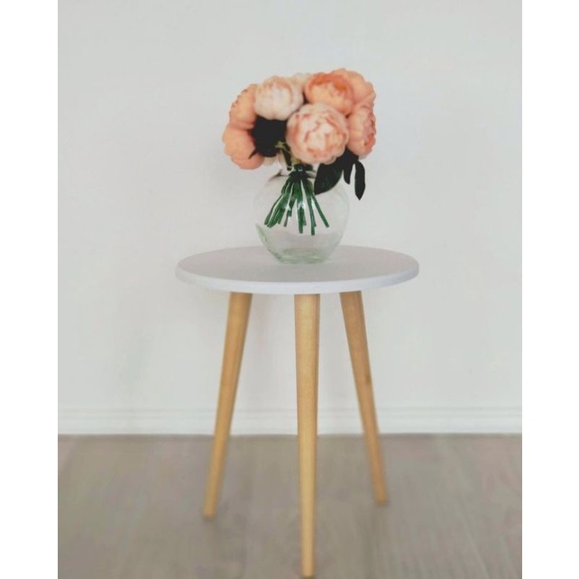 MEJA MINIMALIS MODERN RUANG TAMU BULAT SUDUT SAMPING KAMAR TIDUR DEKORASI HIAS MODERN PUTIH