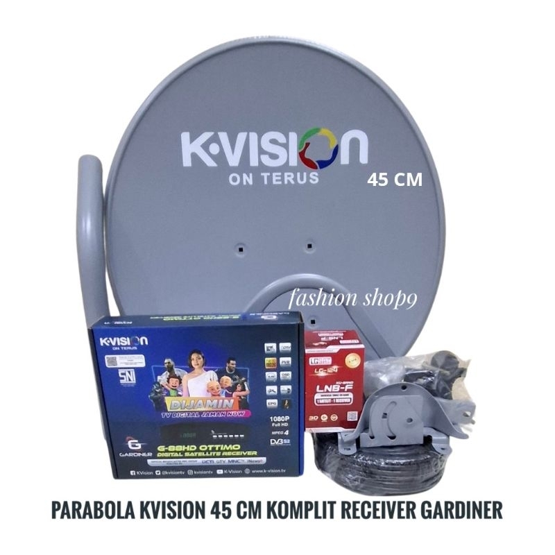 ANTENA TV PARABOLA KVISION 45 CM KOMPLIT + RECEIVER KVISION GARDINER G88HD