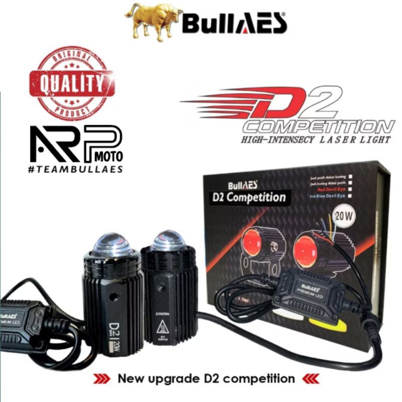 LAMPU TEMBAK D2 PRO LASER COMPETITION 30 WATT ORIGINAL AES SERI TERBARU PLUS DEVIL MERAH / ICE BLUE UNIVERSAL MOTOR MOBI