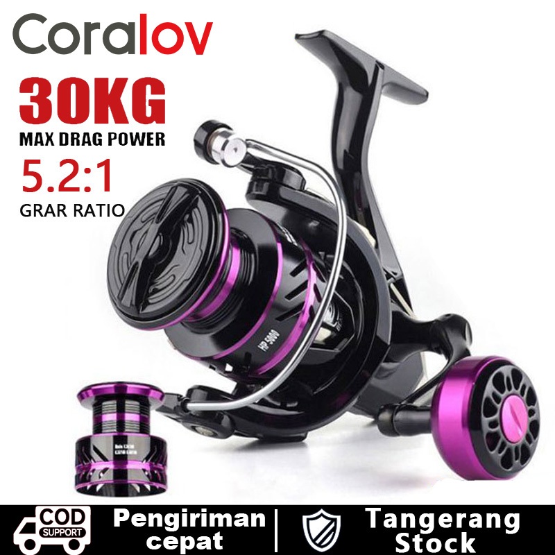 Coralov Reel Pancing HP500-7000 Metal Katrol Pancing Murah Power Handle Reel Spinning Saltwater Titanium 12+1 Bb Max Drag 30kg