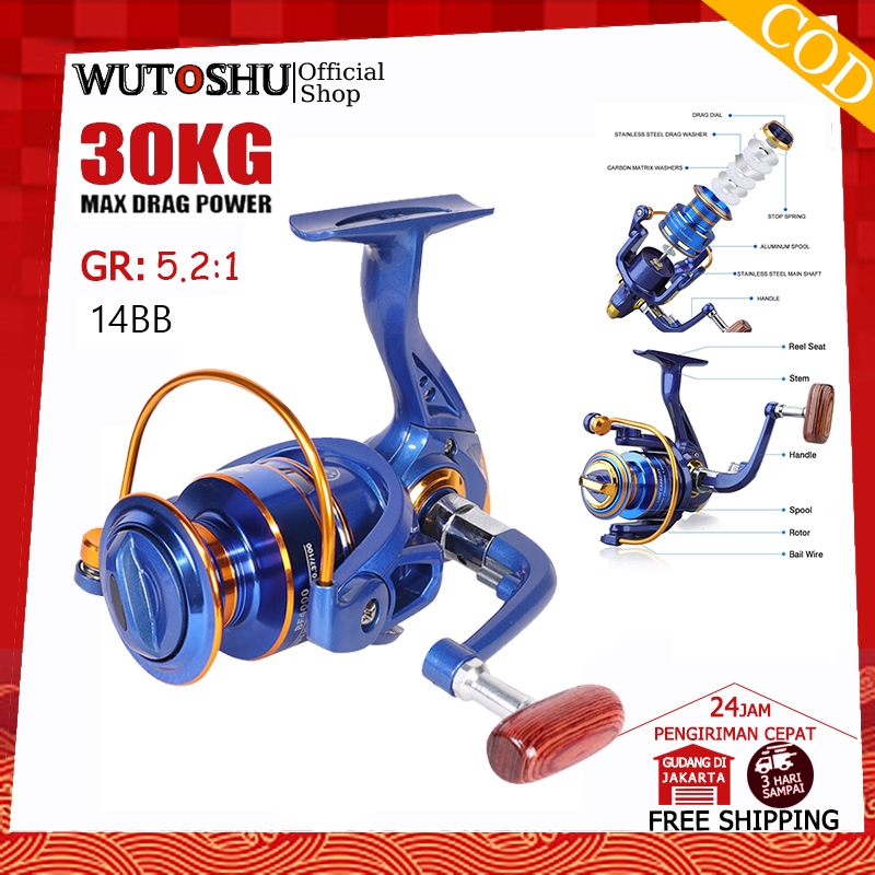 WUTOSHU-Reel Pancing Metal BF 1000 – 7000 Drag 10 KG-30KG/ Ril Pancing Murah / Gulungan Reel Pancing Ikan Logam Metal CNC NX 14 BB/ Reel Pancing Murah Kuat Power/Gulungan Senar Pancing