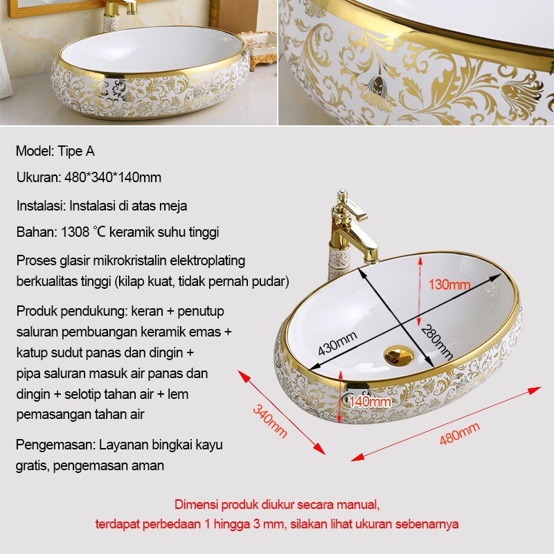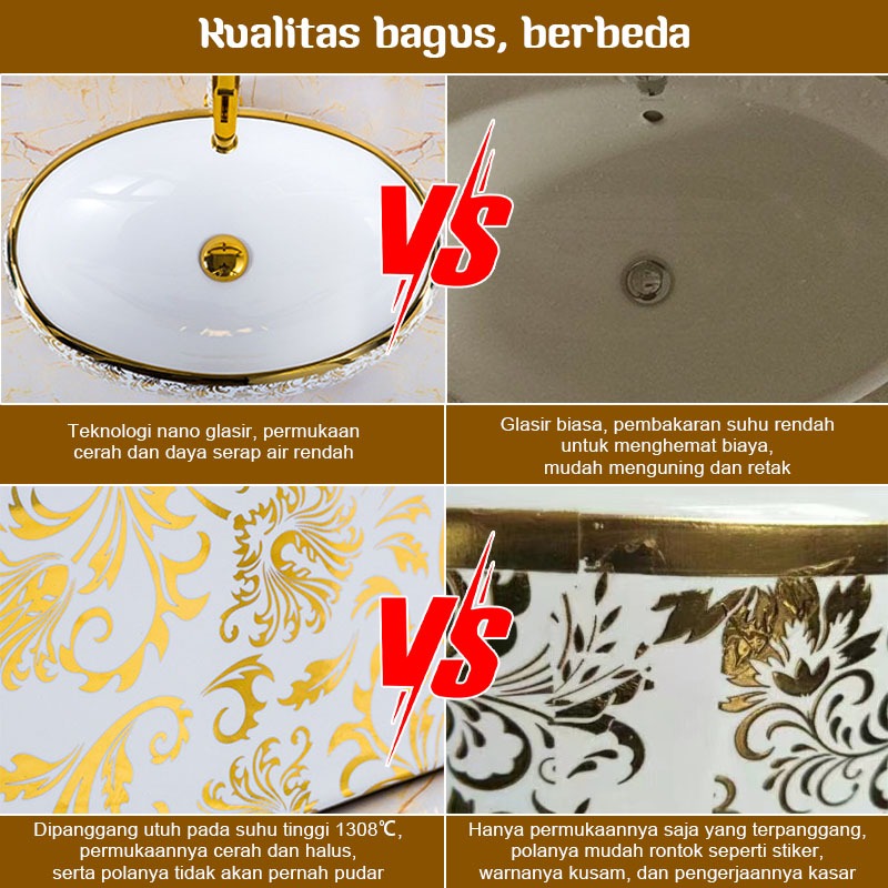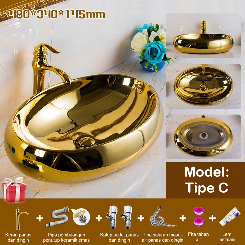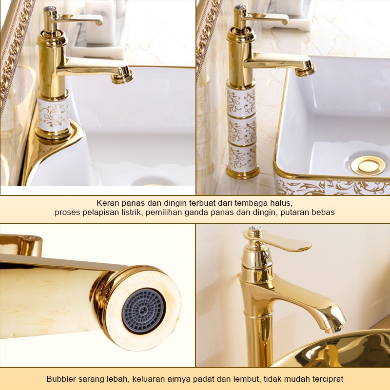 Emas Wastafel Meja Kamar Mandi Eropa 5 Tahun Garansi Wastafel Aesthetic Wastafel Estetik Mewah