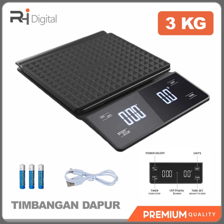 timbangan dapur 3 KG layar LCD timer Electronic Timbangan kopi