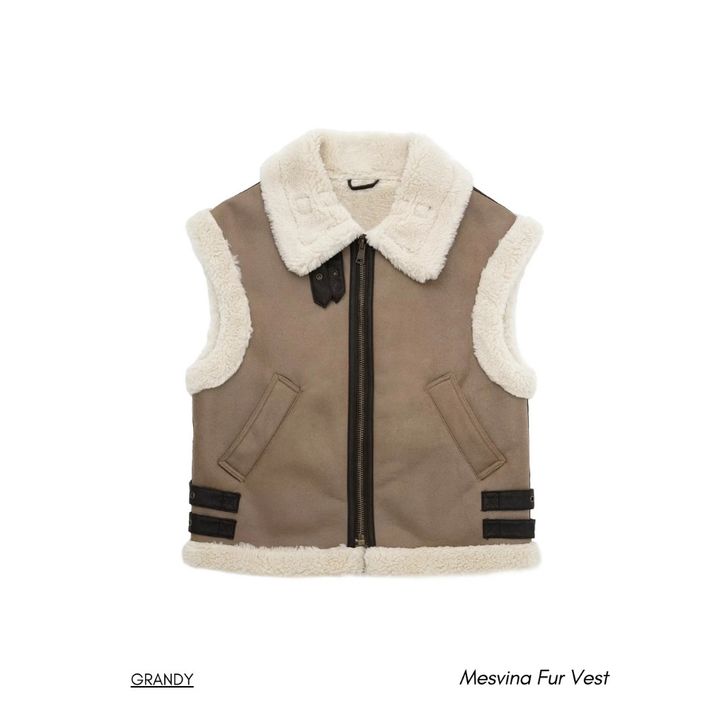 GRANDY - Mesvina Fur Vest / Jaket Luaran Rompi Kulit Bulu Mantel Musim Dingin