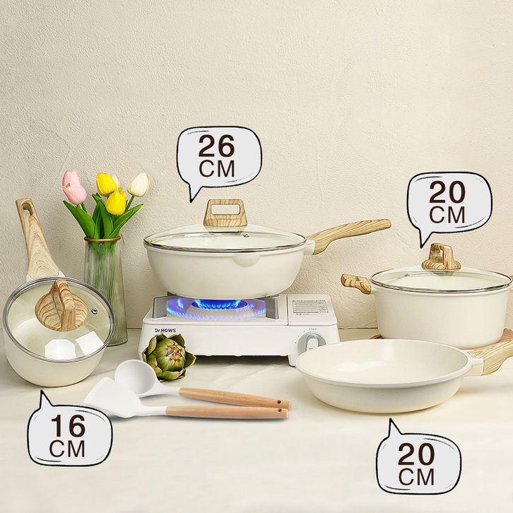 GiPP 14 Pcs Cookware Set Granite Anti Lengket Marble Coating Putih