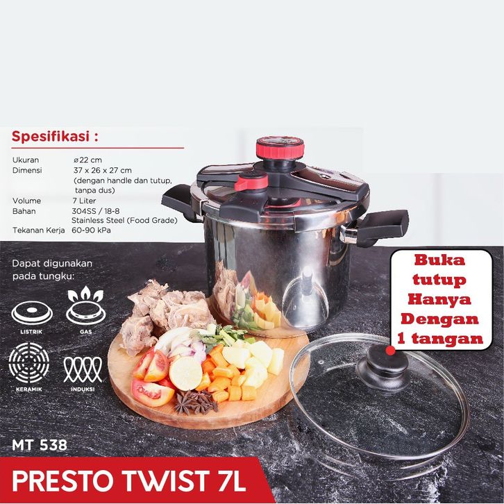 Twin Tulipware PANCI PRESTO Daging 7 liter Stainless Steel Alat Masak Anti Lengket Tulipware Kita