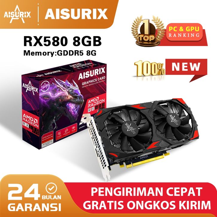 AISURIX VGA RX 580 8GB Radeon AMD VGA RX580 Gaming VGA Card GDDR5 256Bit 2048SP Merah VGA