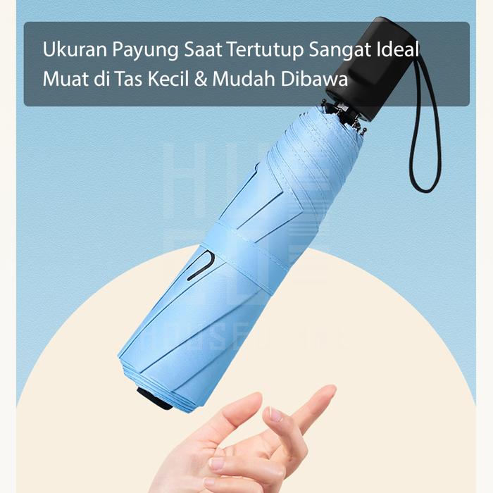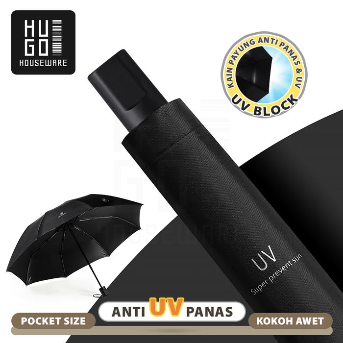 HUGO Payung Anti UV Sinar Matahari Payung Lipat Polos Anti Air Anti Panas Korea Style - Hitam