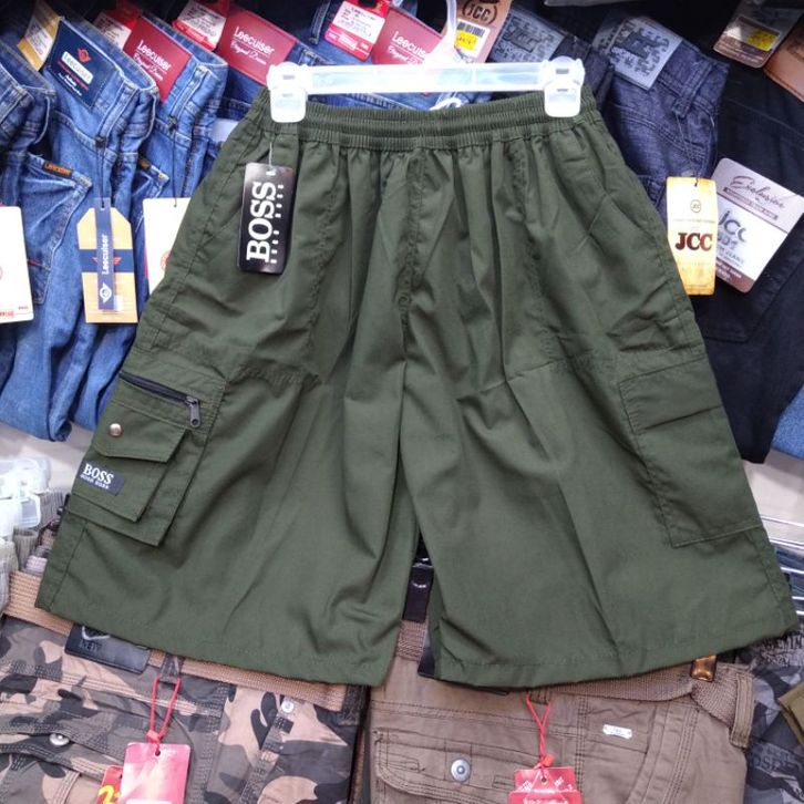 CELANA PENDEK CARGO 3/4 KATUN TWILL PINGGANG KARET BANYAK KANTONG SIZE L-XL Do2