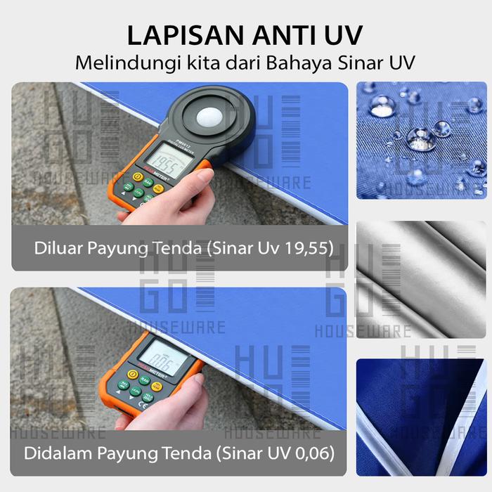HUGO Payung Jualan 200 CM Payung Tenda Taman Pantai Cafe Bazar Lapak dengan Sarung - 200 Biru - UV