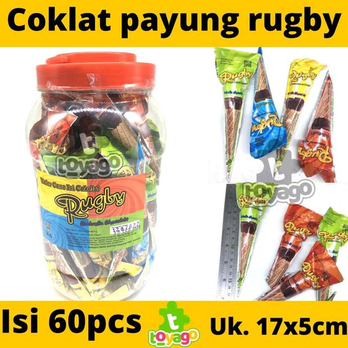 Coklat Rugby Payung/Rugby Wafer Cone Isi 60 Pcs Grosir Murah (coklat rugby toyago toys) - Packing tambah dus