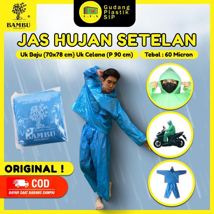 Jas Hujan Plastik LDPE jaket Celana Setelan Bambu Tebal Murah