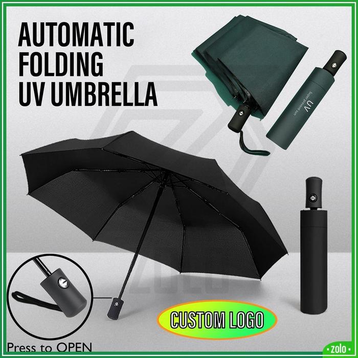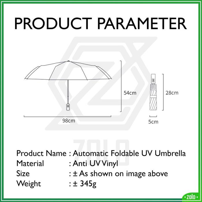 [zolo] Payung Lipat Otomatis Anti UV / Payung UV Tombol Otomatis Buka Tutup Buah Brown Bulu Daun Feather - Auto Hitam